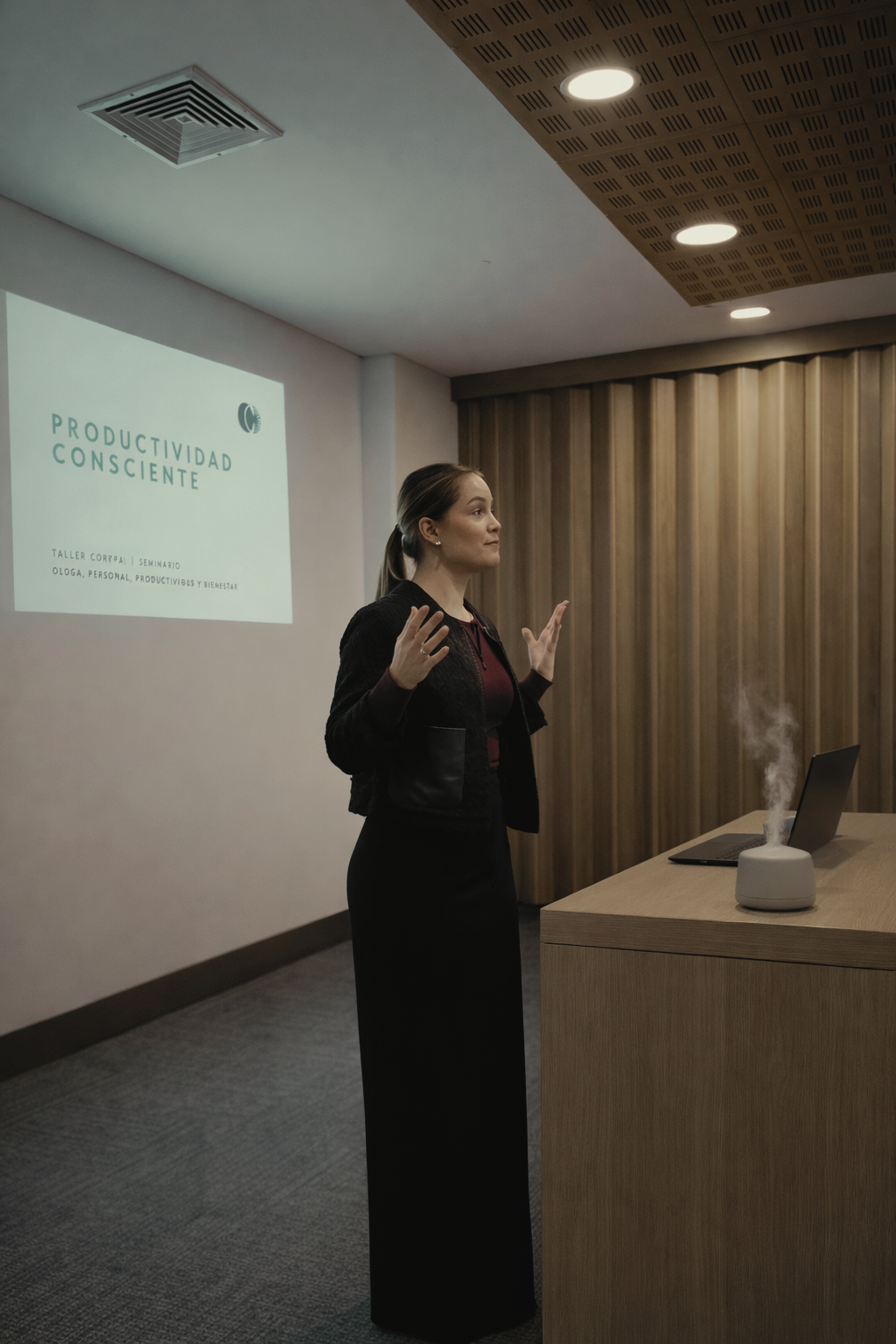 Una mentoría corporativa que va más allá de las técnicas superficiales para transformar la forma en que tu equipo se relaciona con el trabajo, el tiempo y las emociones. Porque la verdadera productividad no se trata de hacer más, sino de crear más eficiencia con menos desgate.